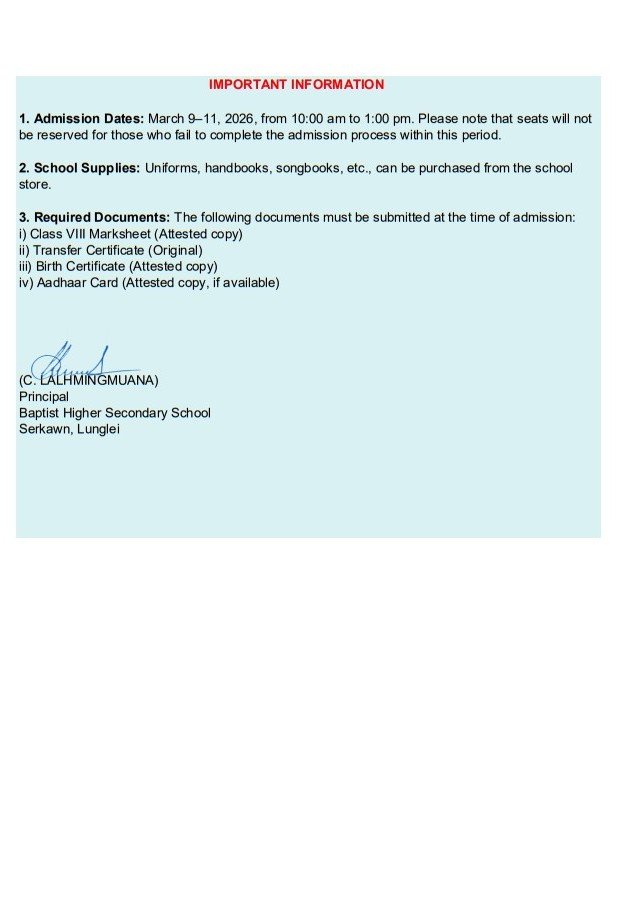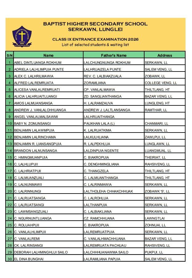 Near BCM Hqtrs, Serkawn.Lunglei, Mizoram.Pincode - 796691.